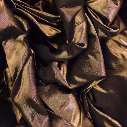 This yarn-dyed silk faille fabric, renowned for its subtle horizontal ribs in the weft and its exceptional ability to retain its structured form. The addition of lurex yarn gives it a shimmering effect, making it a stunning choice. Its crisp texture and durability make it ideal for creating elegant skirts, gowns, tailored jackets, and even shoes.